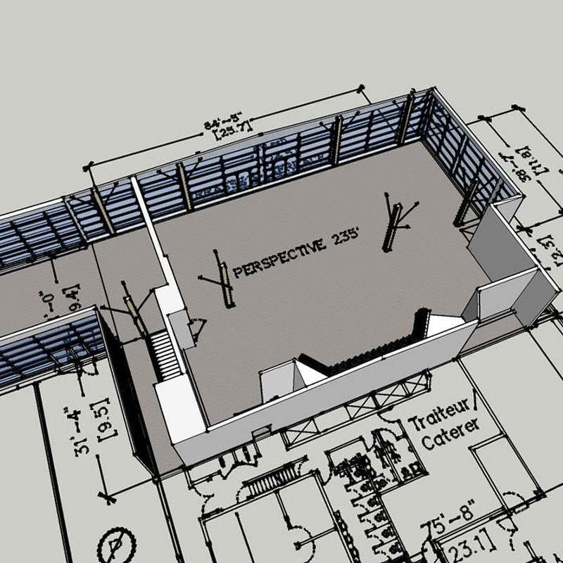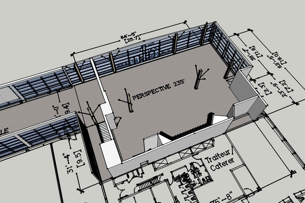 Rendering, Design3D Floor plan of Montreal's Science center for local event planners to use